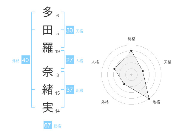 多田羅 奈緒実さんを姓名の画数から五運を鑑定