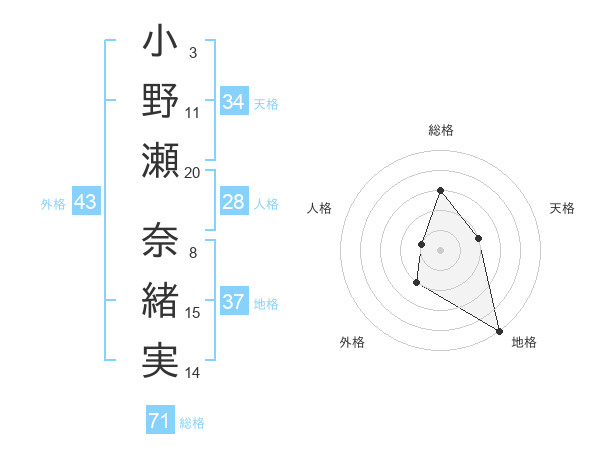 小野瀬 奈緒実さんを姓名の画数から五運を鑑定