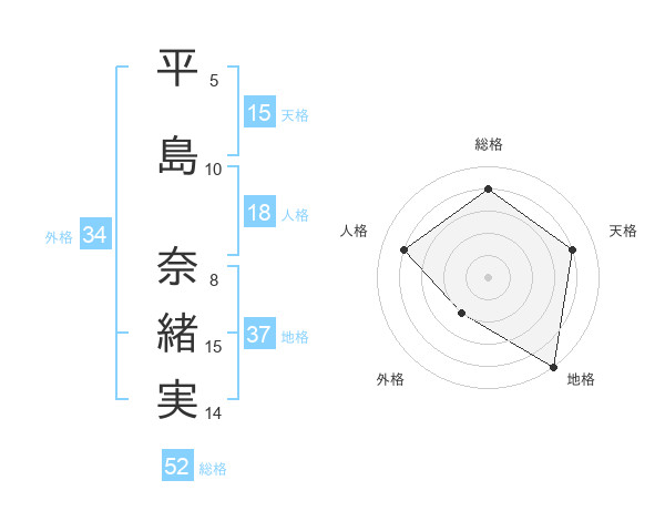 平島 奈緒実さんを姓名の画数から五運を鑑定