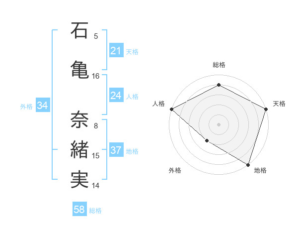 石亀 奈緒実さんを姓名の画数から五運を鑑定