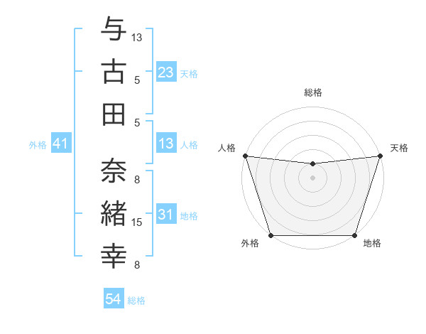 与古田 奈緒幸さんを姓名の画数から五運を鑑定