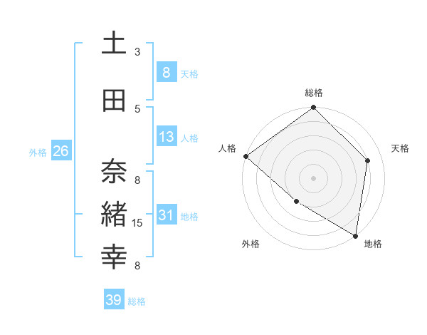 土田 奈緒幸さんの総格は39画の5点!