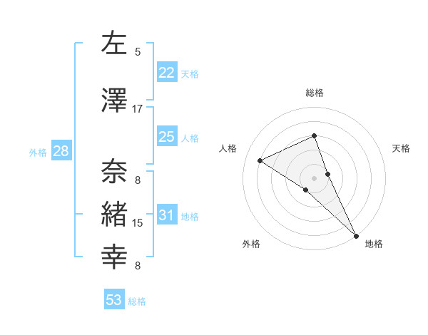 左澤 奈緒幸さんの総格は53画の3点!
