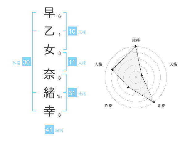 早乙女 奈緒幸さんを姓名の画数から五運を鑑定