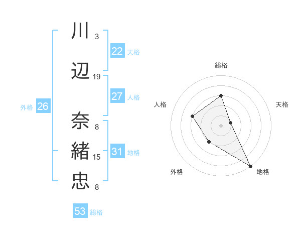 川辺 奈緒忠さんを姓名の画数から五運を鑑定