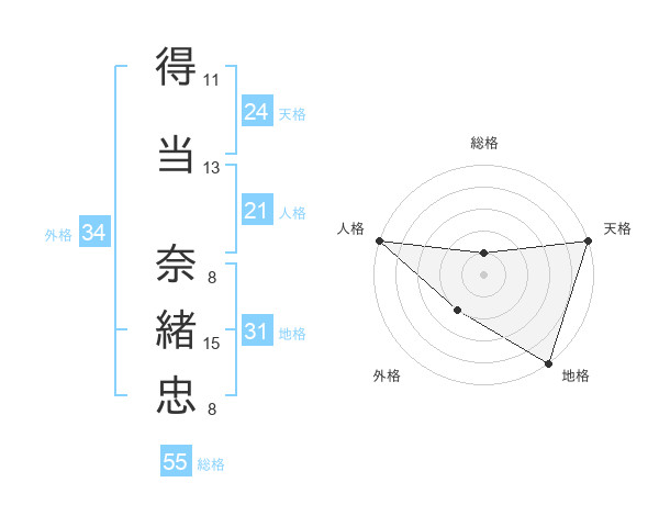 得当 奈緒忠さんを姓名の画数から五運を鑑定