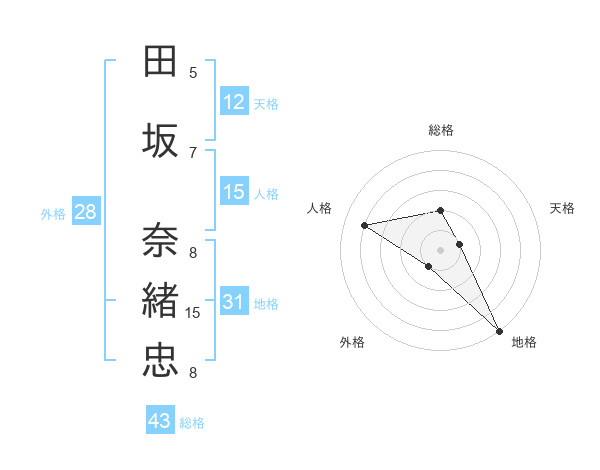 田坂 奈緒忠さんを姓名の画数から五運を鑑定