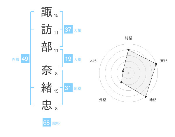 諏訪部 奈緒忠さんの総格は68画の4点!