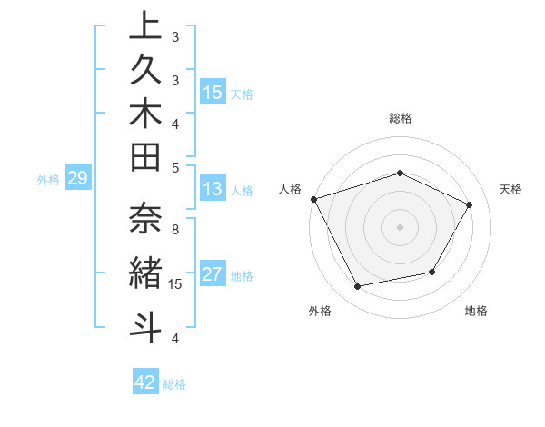 上久木田 奈緒斗さんを姓名の画数から五運を鑑定
