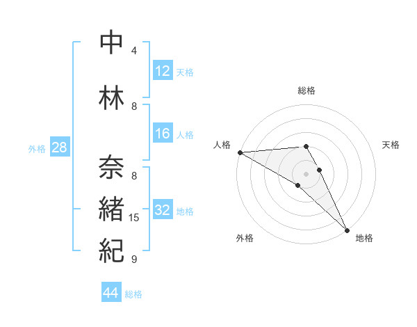 中林 奈緒紀さんの総格は44画の2点!