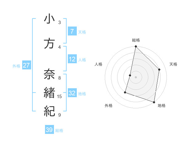 小方 奈緒紀さんを姓名の画数から五運を鑑定