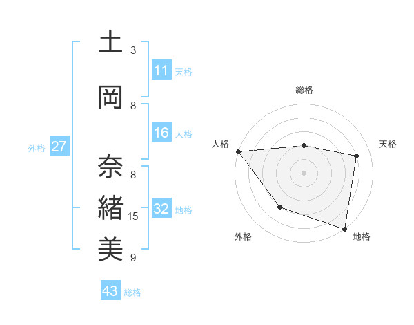 土岡 奈緒美さんを姓名の画数から五運を鑑定