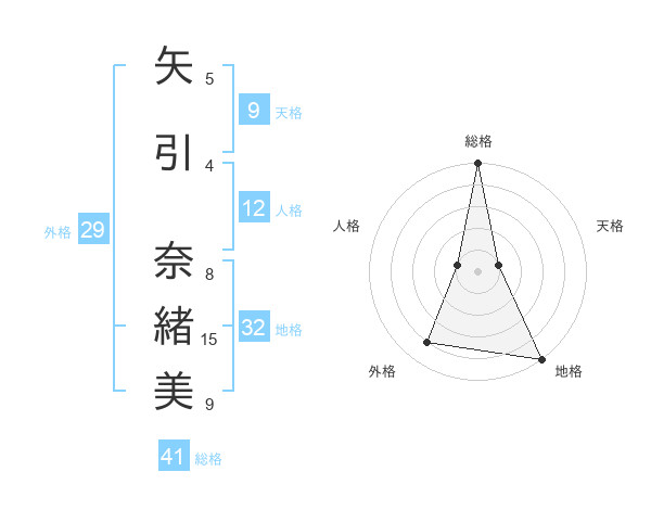 矢引 奈緒美さんの総格は41画の5点!