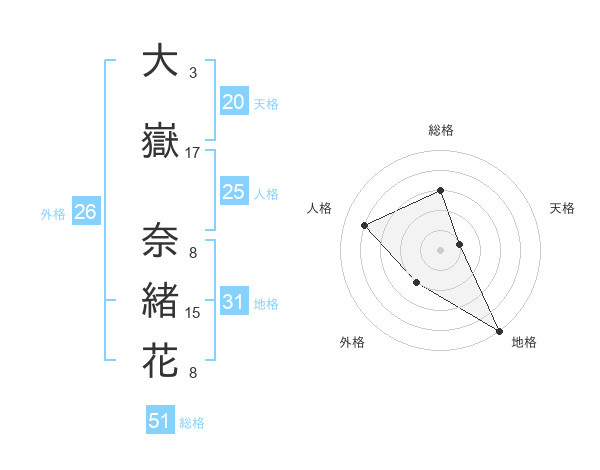 大嶽 奈緒花さんの総格は51画の3点