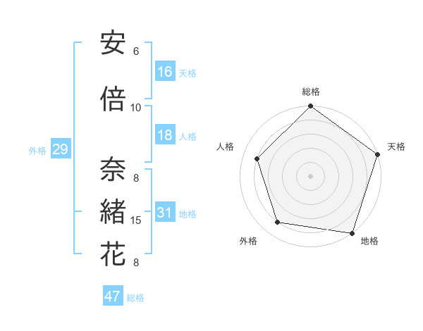 安倍 奈緒花さんを姓名の画数から五運を鑑定