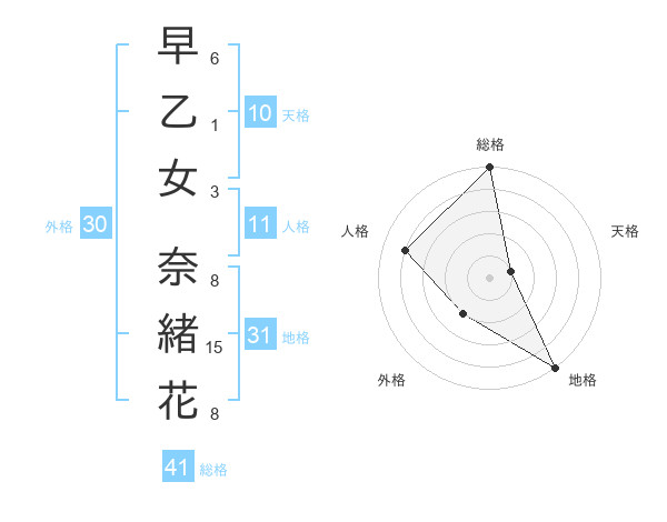 早乙女 奈緒花さんを姓名の画数から五運を鑑定