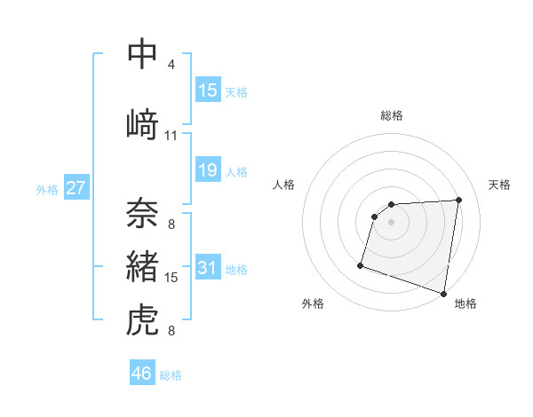 中﨑 奈緒虎さんを姓名の画数から五運を鑑定