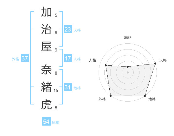 加治屋 奈緒虎さんを姓名の画数から五運を鑑定