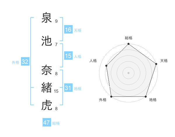泉池 奈緒虎さんの総格は47画の5点!