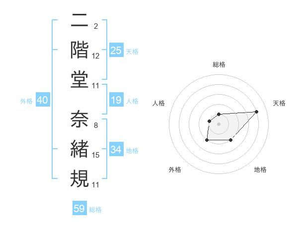 二階堂 奈緒規さんの天格は25画の4点!
