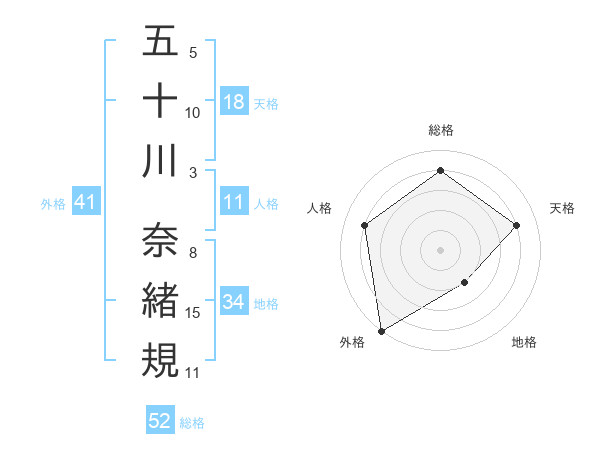 五十川 奈緒規さんを姓名の画数から五運を鑑定