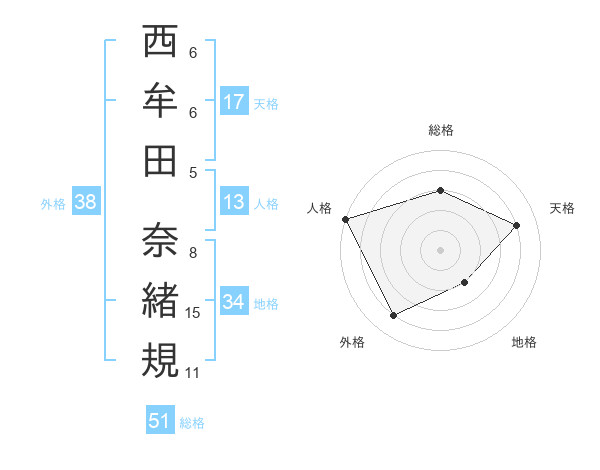 西牟田 奈緒規さんを姓名の画数から五運を鑑定