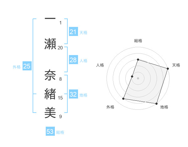 一瀬 奈緖美さんの総格は53画の3点!