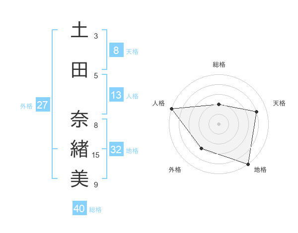 土田 奈緖美さんを姓名の画数から五運を鑑定