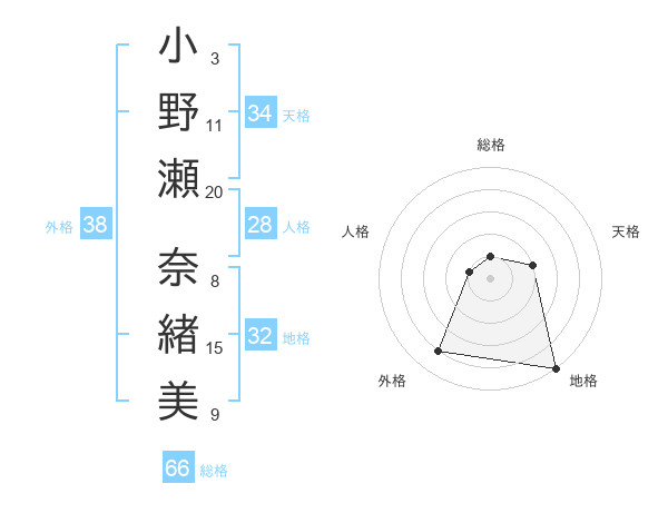 小野瀬 奈緖美さんを姓名の画数から五運を鑑定