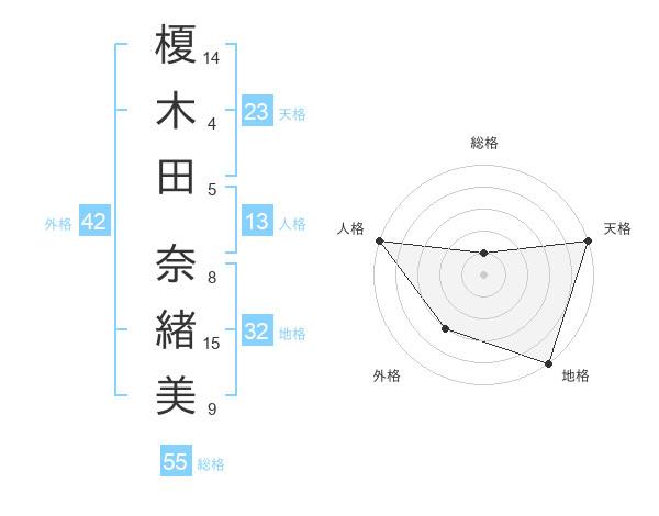 榎木田 奈緖美さんの天格は23画の5点!