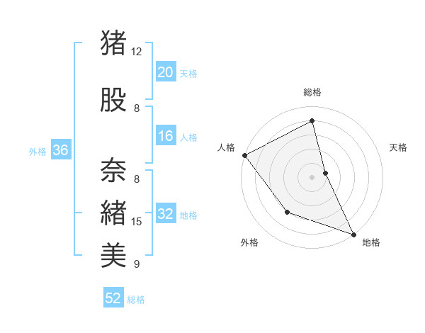猪股 奈緖美さんを姓名の画数から五運を鑑定