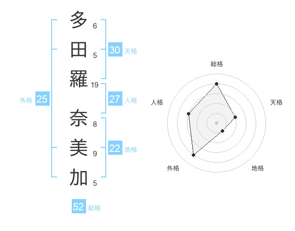 多田羅 奈美加さんを姓名の画数から五運を鑑定