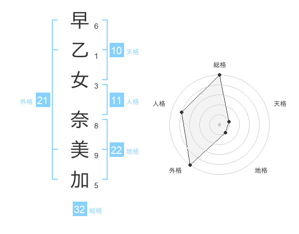 早乙女 奈美加さんを姓名の画数から五運を鑑定