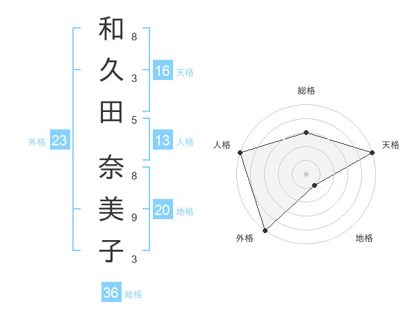 和久田 奈美子さんを姓名の画数から五運を鑑定