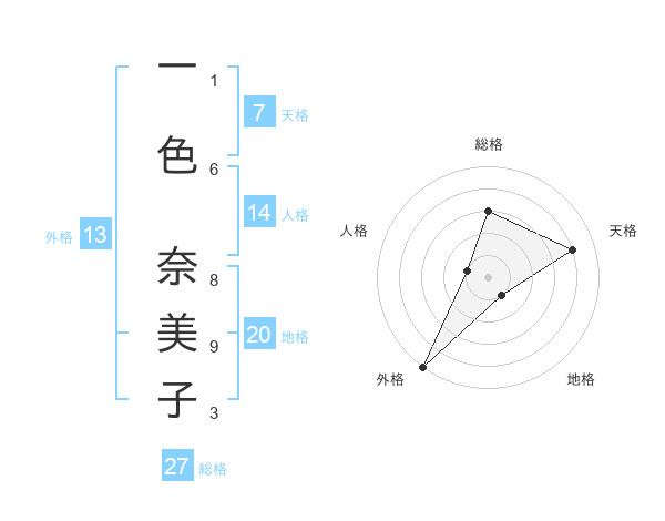 一色 奈美子さんの総格は27画の3点!