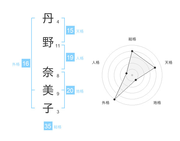 丹野 奈美子さんを姓名の画数から五運を鑑定