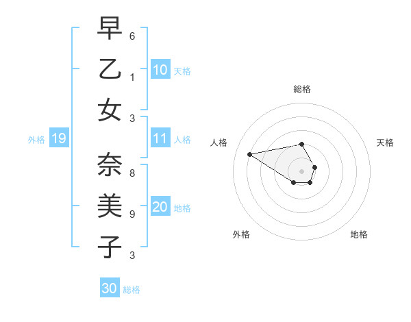 早乙女 奈美子さんを姓名の画数から五運を鑑定