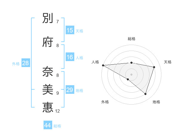 別府 奈美惠さんを姓名の画数から五運を鑑定