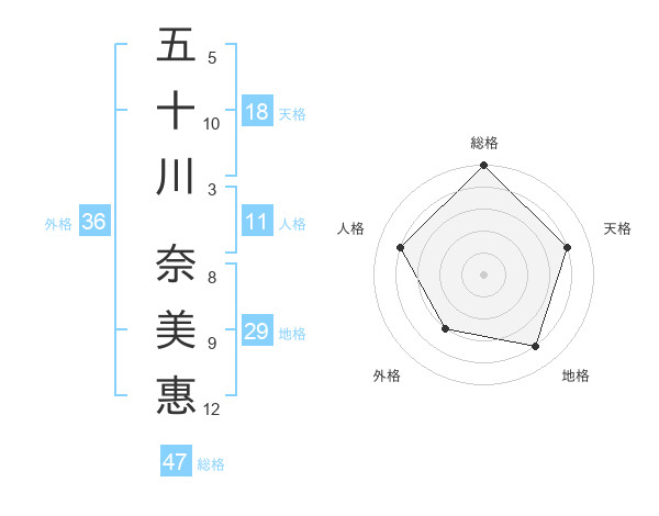 五十川 奈美惠さんを姓名の画数から五運を鑑定