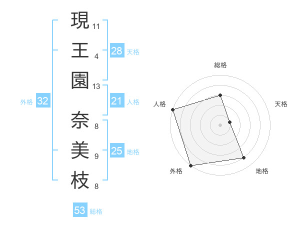 現王園 奈美枝さんを姓名の画数から五運を鑑定