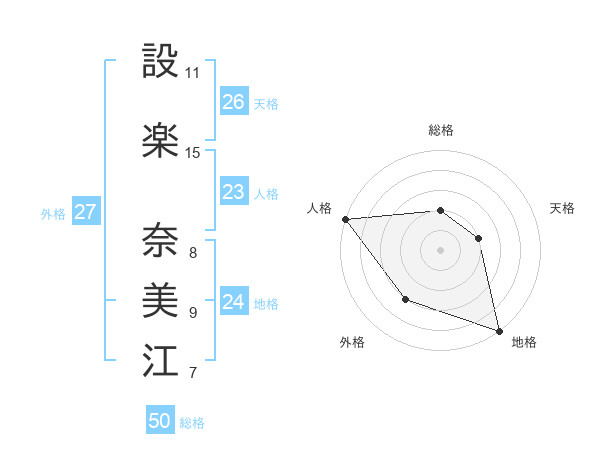 設楽 奈美江さんを姓名の画数から五運を鑑定