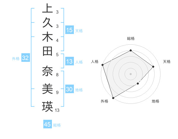 上久木田 奈美瑛さんを姓名の画数から五運を鑑定
