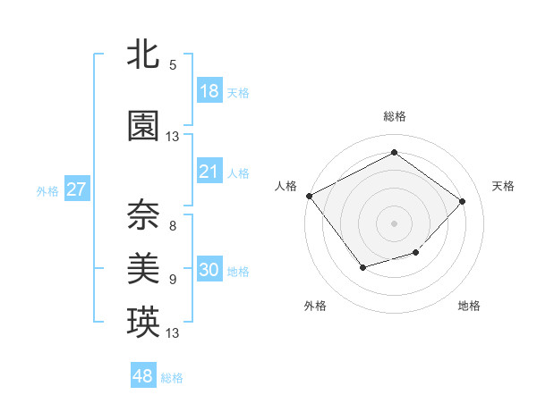 北園 奈美瑛さんを姓名の画数から五運を鑑定