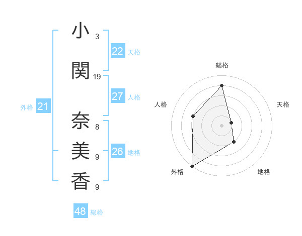 小関 奈美香さんの外格は21画の5点!