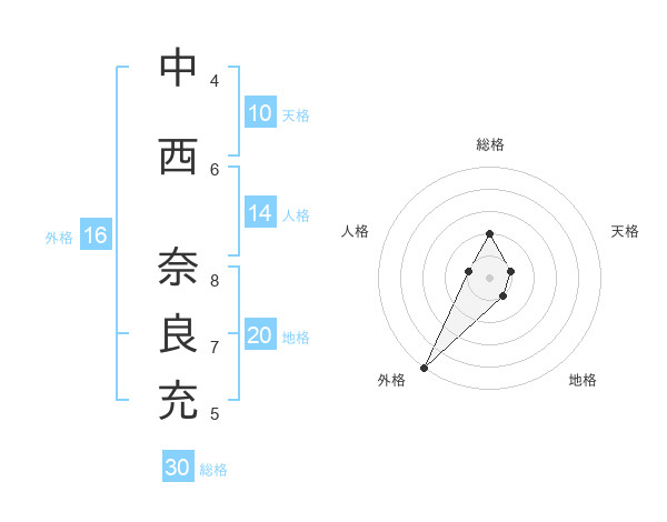 中西 奈良充さんの総格は30画の2点!