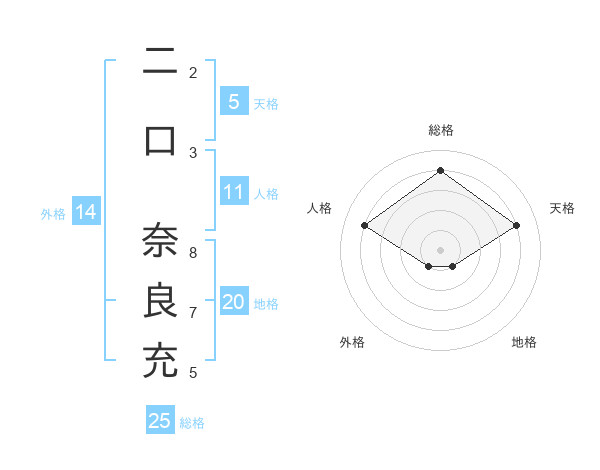 二口 奈良充さんを姓名の画数から五運を鑑定