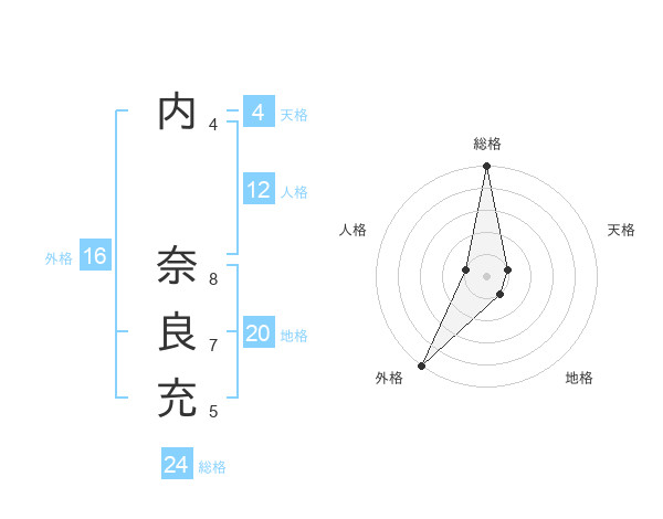 内 奈良充さんの総格は24画の5点!