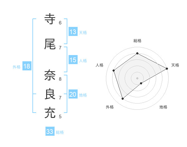 寺尾 奈良充さんの総格は33画の4点!
