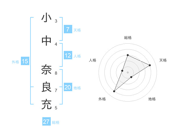 小中 奈良充さんの総格は27画の3点!