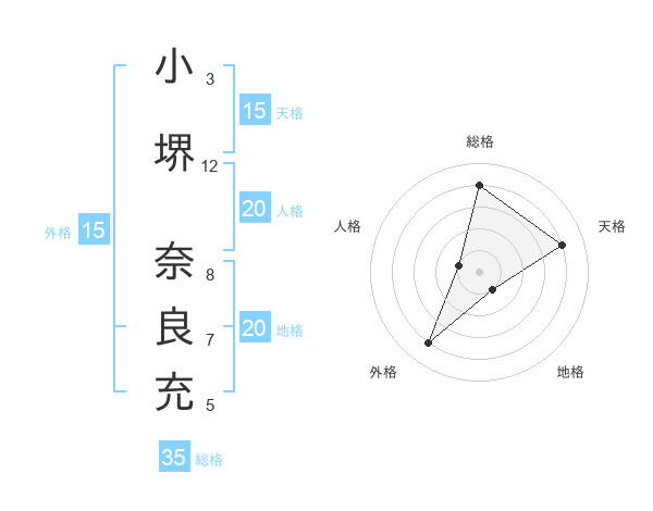 小堺 奈良充さんの総格は35画の4点!